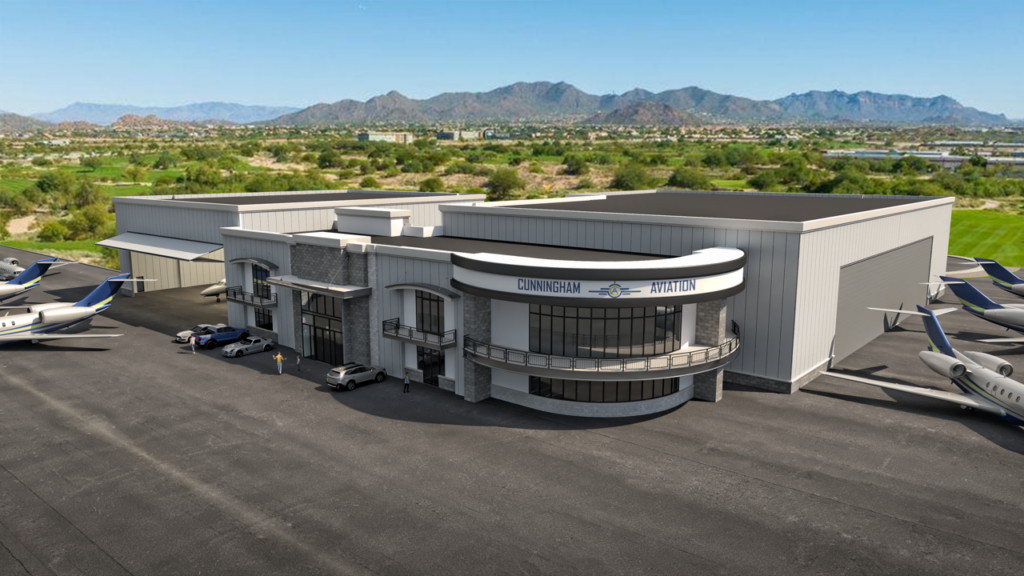 Exciting news from Cunningham Aviation — this fall, we’re unveiling our new FBO terminal! Featuring expanded hangar facilities and office space, our upgraded FBO is designed for seamless jet support and tailored service, all set against the stunning backdrop of the Arizona desert.